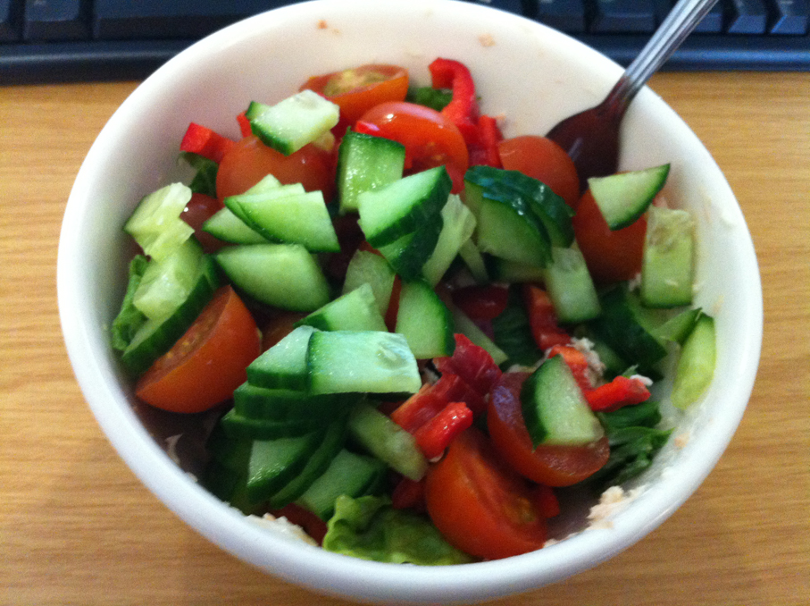 Lunch today was salad (sensing the theme yet?) w/ tuna. You can’t see the tuna under the salad, but believe me it’s there!